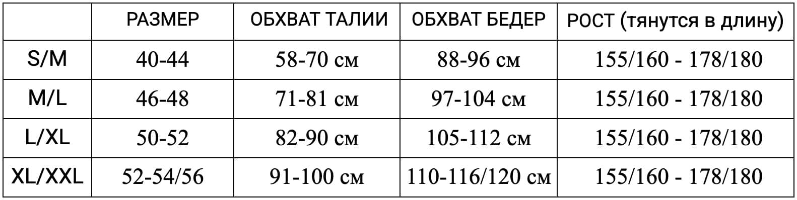 Используйте измерения ниже, чтобы определить свой размер. Если вы находитесь на границе двух размеров, закажите больший размер в данной модели для более комфортной посадки, так как больший размер имеет лучшую эластичность. Если вам сложно определить размер, обратитесь к нам в Instagram для подробной консультации и индивидуального подбора размера.